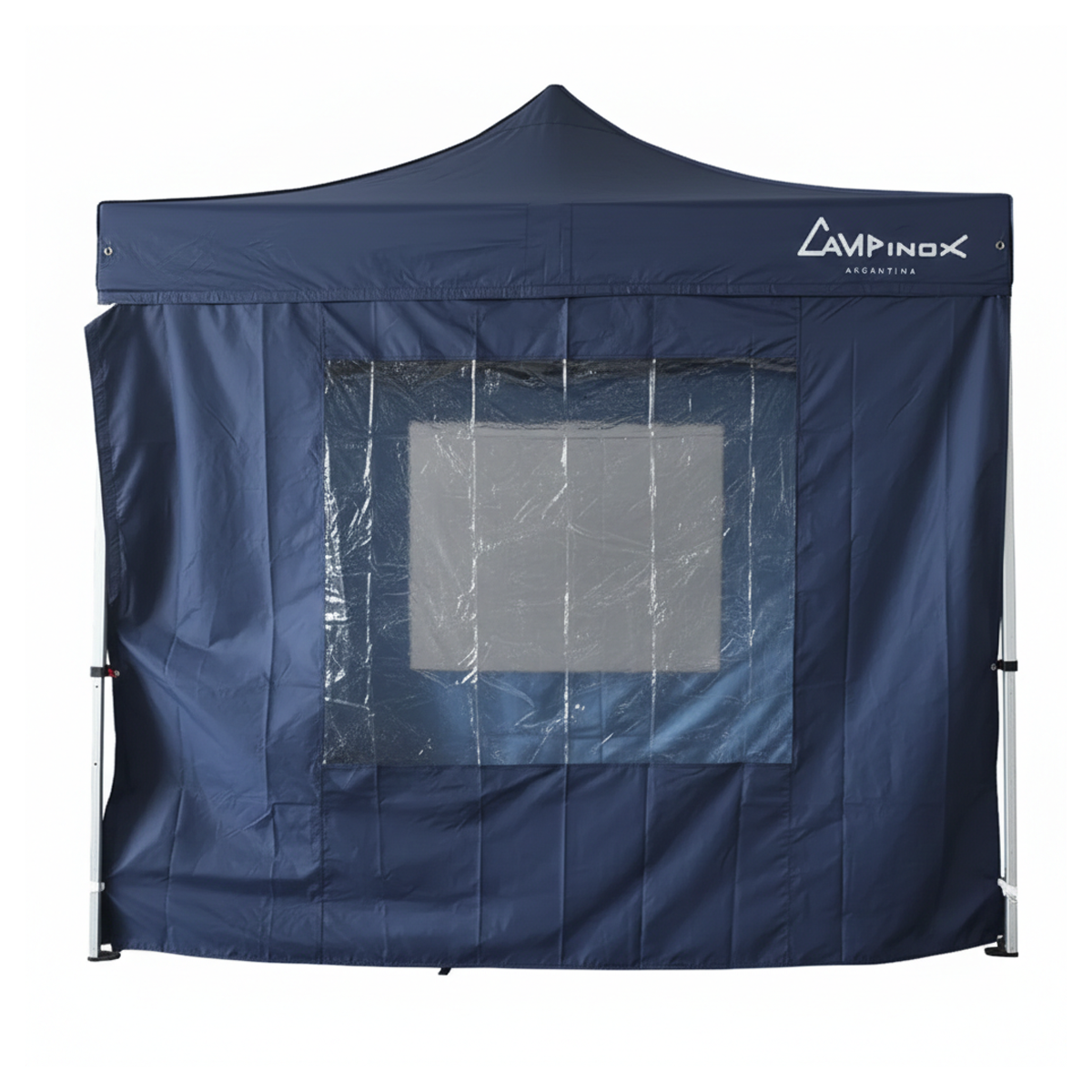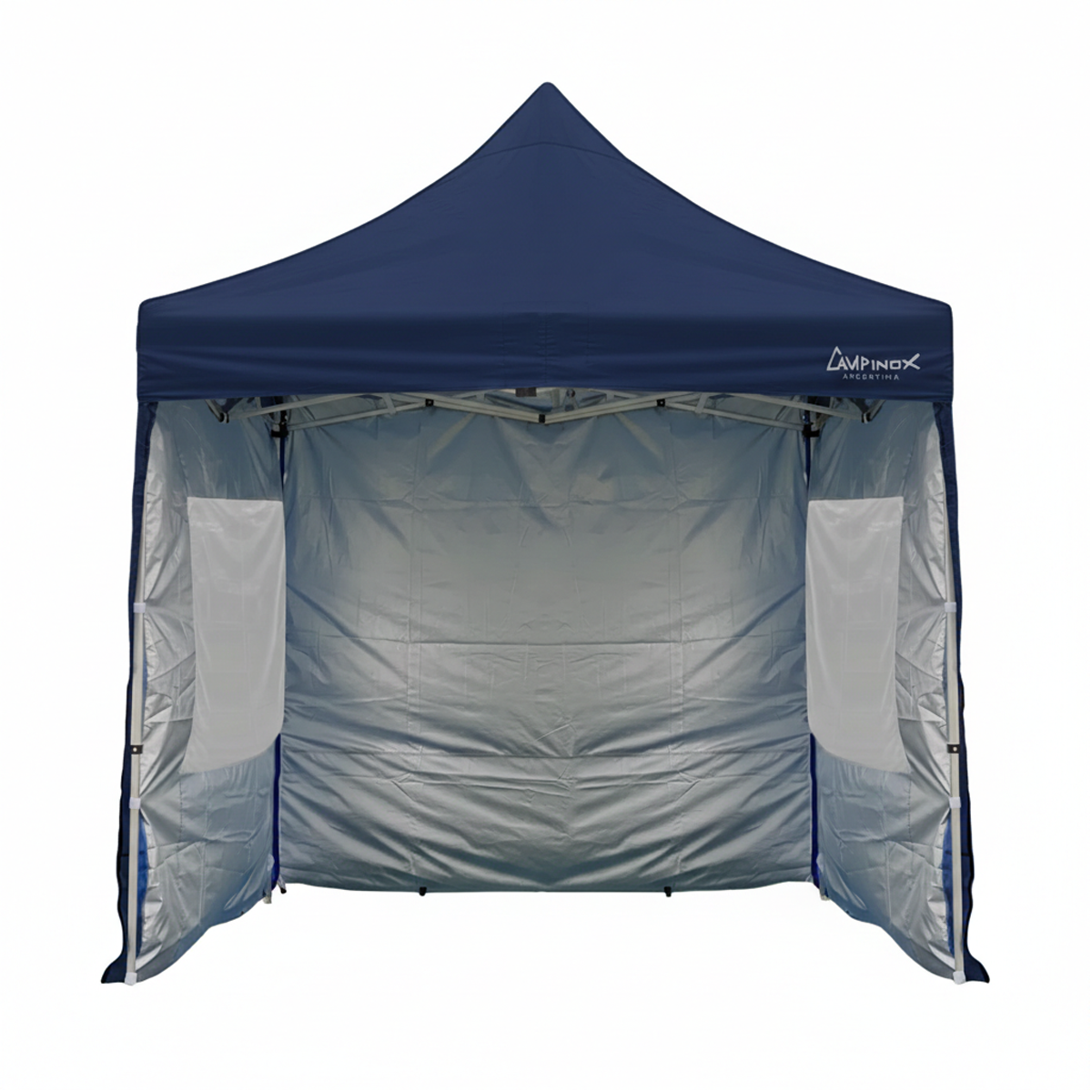 - Techo y paredes técnicas: Confeccionado en loneta de poliéster de alta densidad, totalmente impermeabilizada gracias a su techo termosellado. Su recubrimiento aluminizado interno actúa como un escudo contra los rayos UV, reduciendo la temperatura bajo el gazebo.