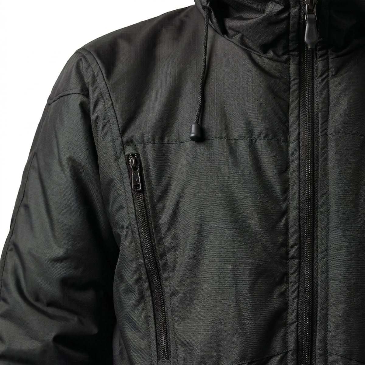 - Ajuste y sellado: Los puños elastizados y la capucha con cordón de ajuste permiten que el calor corporal quede atrapado en el interior, protegiendo las extremidades y el cuello de las ráfagas de viento.