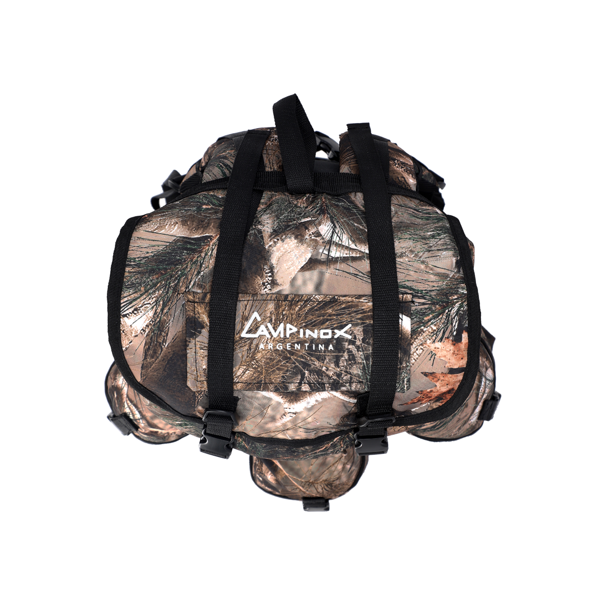 La Mochila Comando 55 llitros de Campinox ha sido diseñada para el aventurero que no deja nada librado al azar. Con un volumen generoso y una estructura reforzada, es capaz de transportar todo el equipo necesario para jornadas prolongadas de caza, pesca o trekking, manteniendo la comodidad y la mimetización necesaria gracias a su patrón Real 3D.