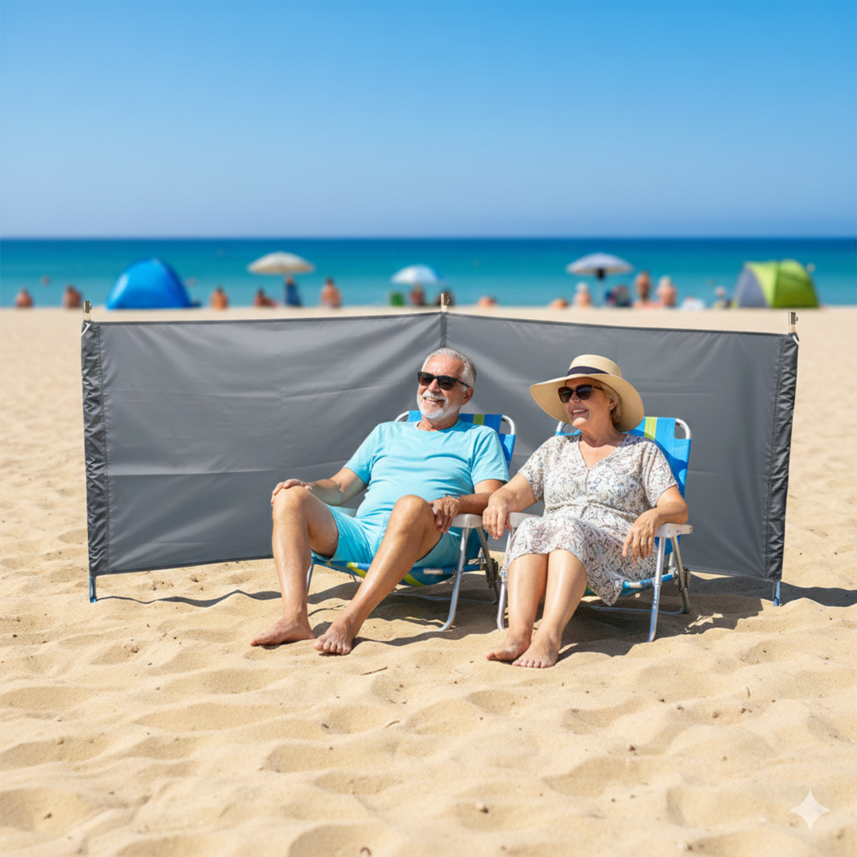 - Sistema de fijado rápido: Incorpora un dispositivo exclusivo que permite armar y tensar el paraviento en pocos minutos, asegurando que la tela quede firme y no flamee con el viento.