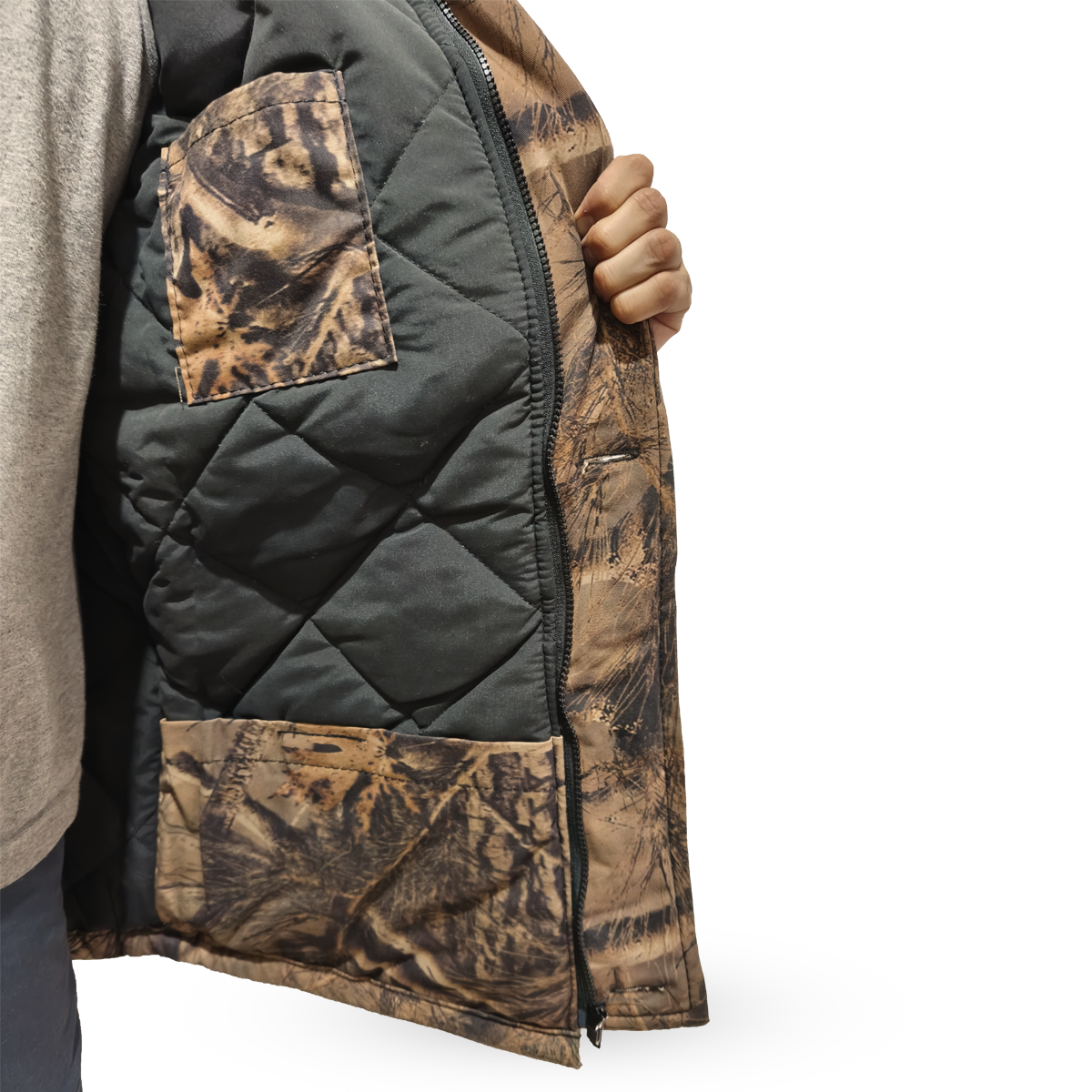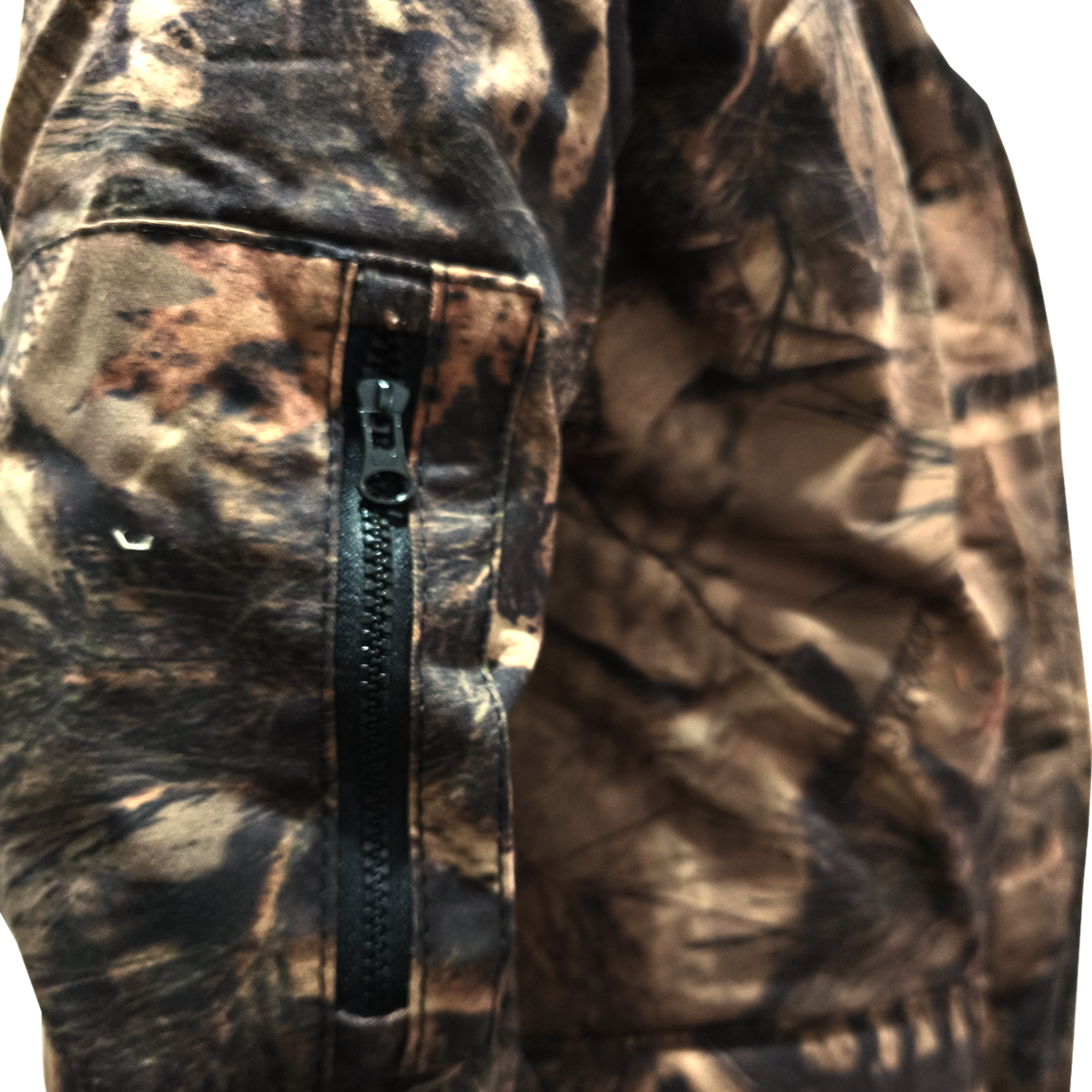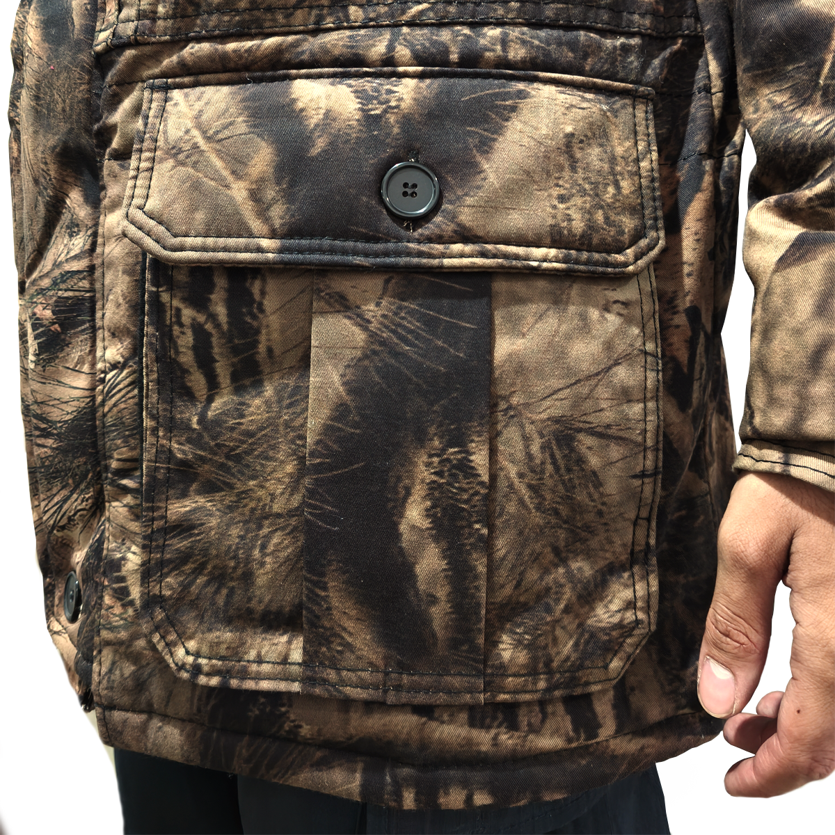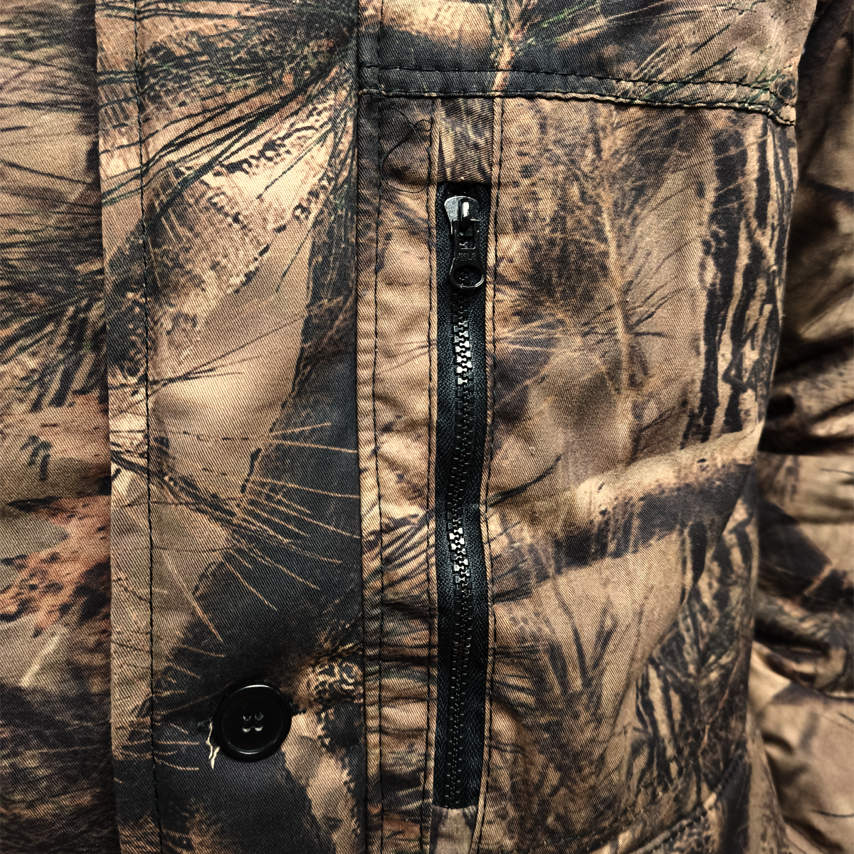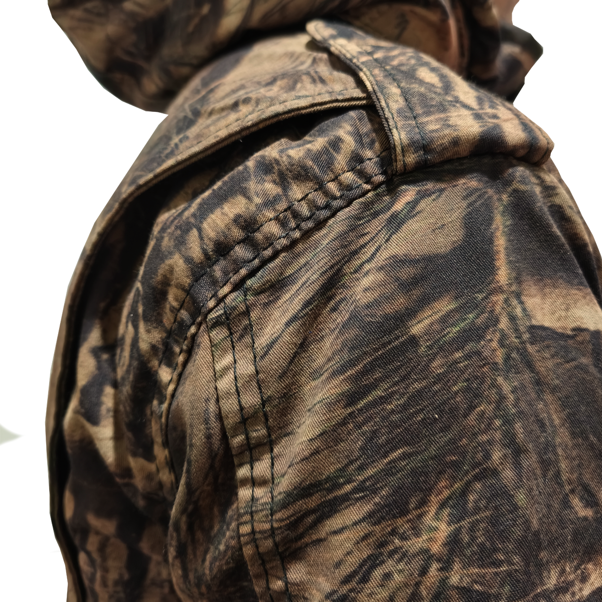 - Gabardina antisonora y repelente: El exterior de algodón 100% cuenta con un proceso de repelencia al agua. Su principal ventaja es el comportamiento acústico: no genera ruidos de fricción al moverse, factor crítico para la caza profesional o la fotografía de naturaleza.
